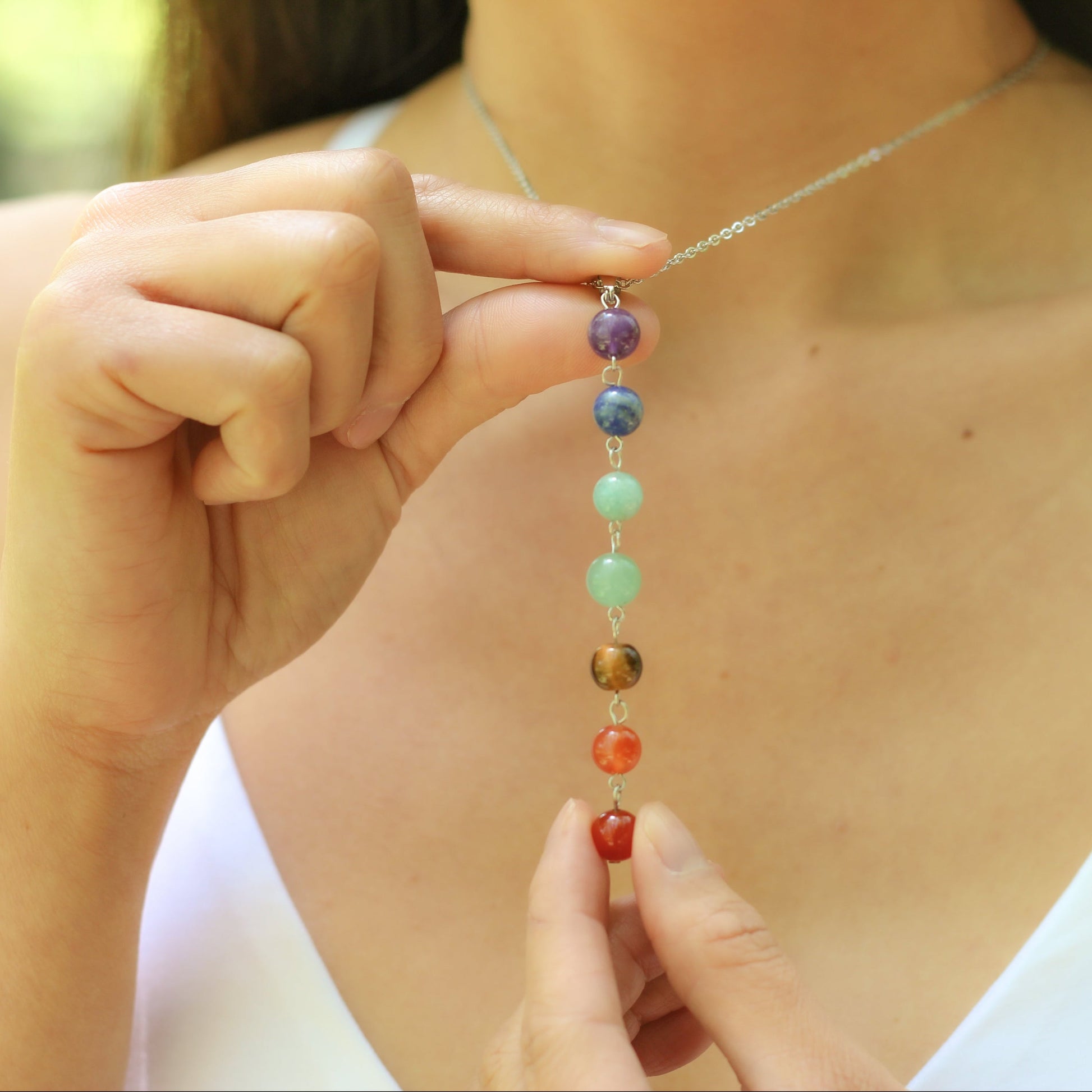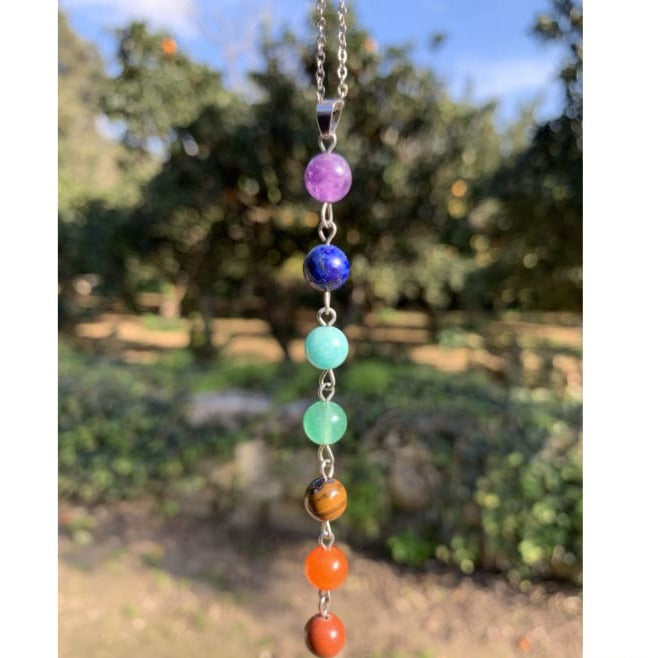 7 Chakras Gemstone Silver Necklace – Balance and Harmony